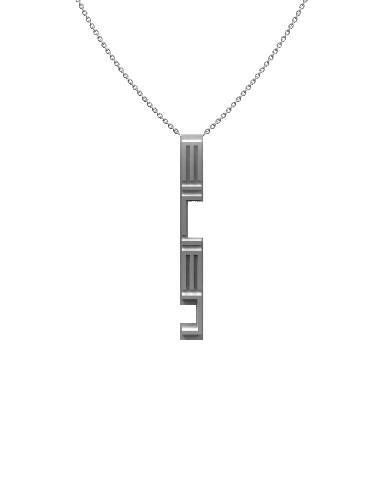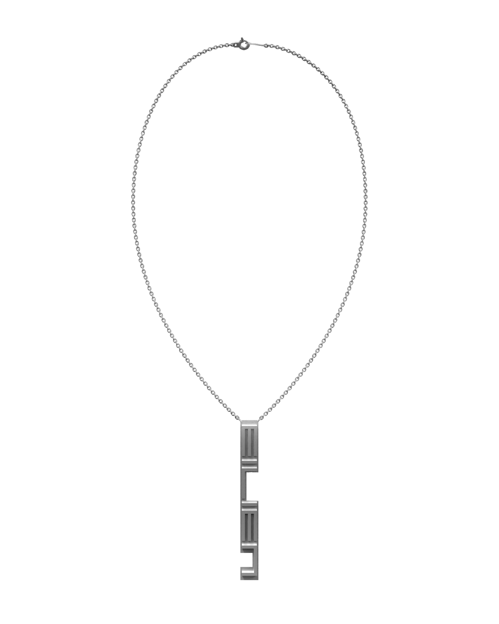 EILIEN nameplate pendant; solid cast bronze with palladium plating (matte silver finish); 20" chain with spring ring clasp; sold individually.