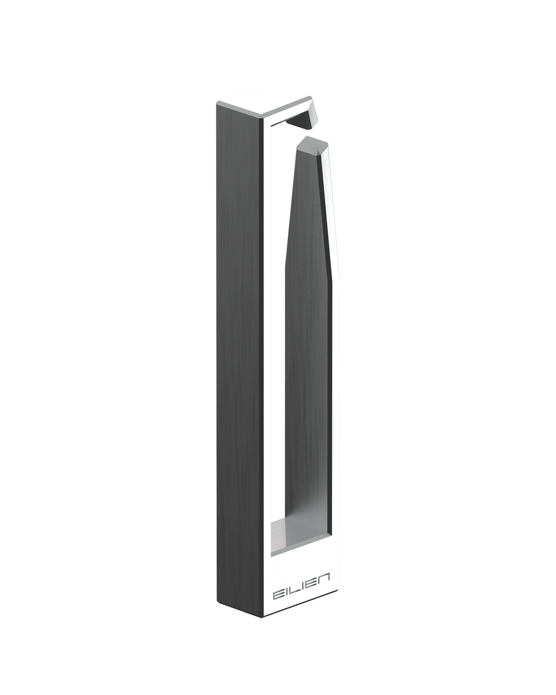 pierceless lobe earring; solid cast bronze with palladium plating (matte silver finish); EILIEN logo engraving on sides; sold individually.